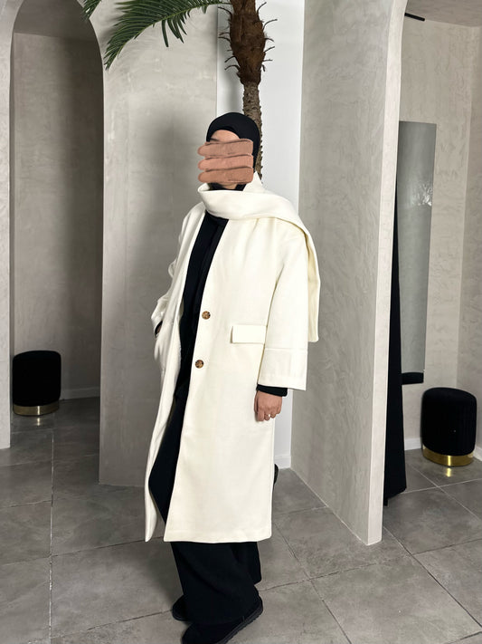 En venteMANTEAU AVEC ÉCHARPE BLANC CASSÉ