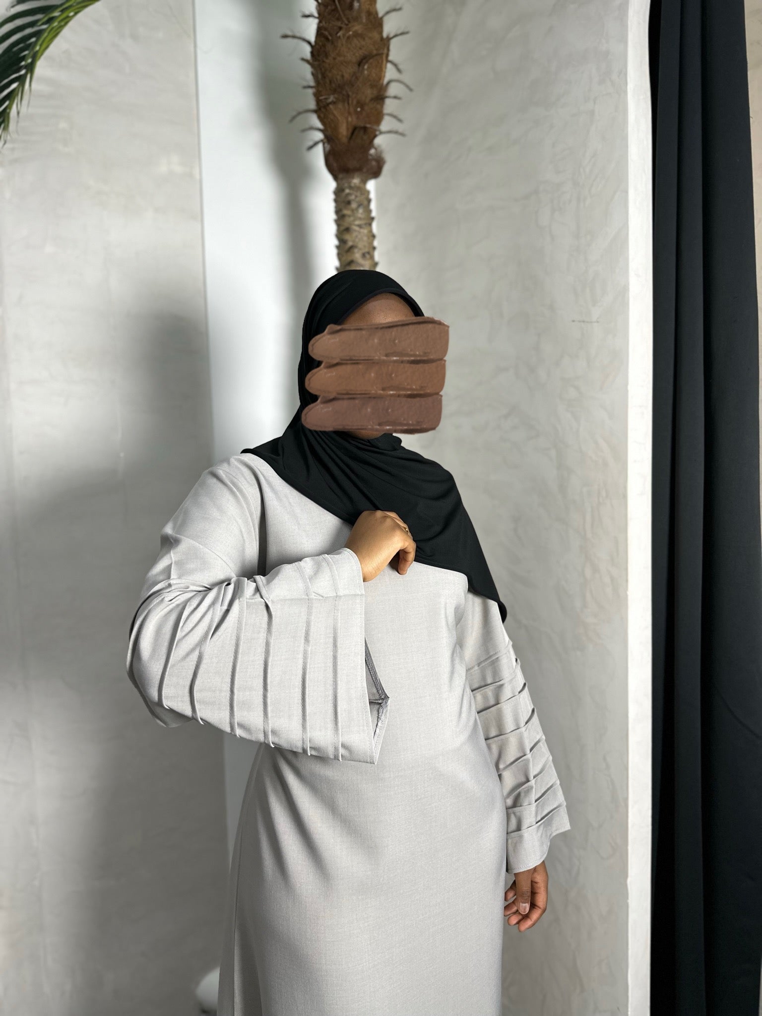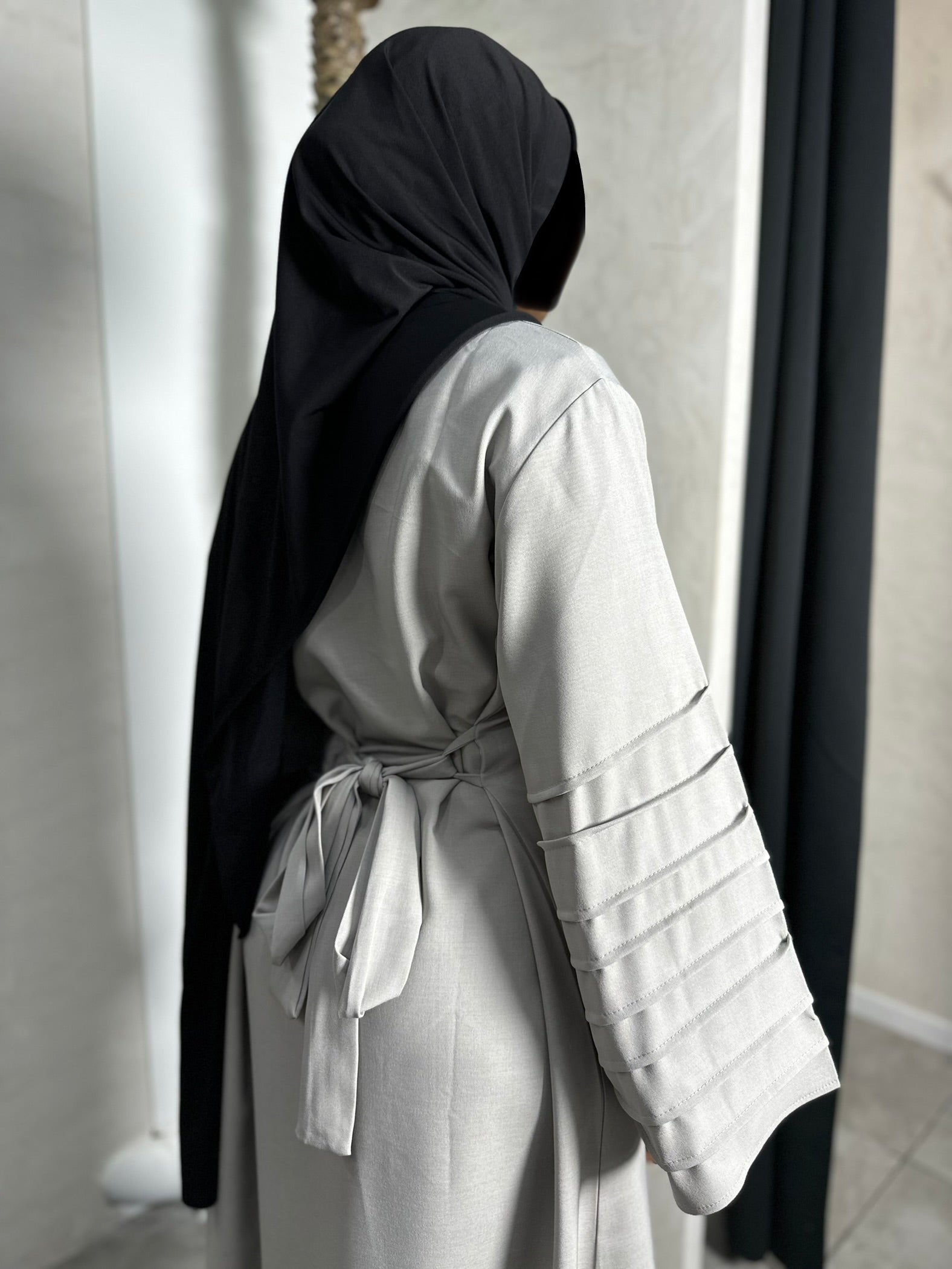 ABAYA À NOUER AUX MANCHES PLISSÉES TAUPE